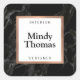 Coordina con la plantilla de tarjetas de presentación de marco de oro rosa falso con mármol negro moderno de 1201AM. Un fondo elegante y moderno con mármol negro crea un visual lujoso en estas etiquetas adhesivas personalizadas. Su nombre o el nombre de su empresa se estila elegantemente en un cuadro con marco de oro rosa falso para un logotipo llamativo. Agregue su título, sitio web o texto descriptivo alrededor de los bordes o déjelo en blanco. Ideal para usar como sellos en sobres o paquetes, para etiquetar cajas o productos con su marca, o para personalizar rápidamente cualquier cosa en su oficina o hogar. Arte y diseño © 1201AM CREATIVE