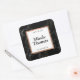 Pegatina Cuadrada Marco moderno de mármol negro con falso dorado ros