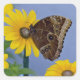 Pegatina Cuadrada Mariposa Buckeye sobre margarita amarilla