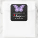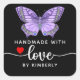 Pegatina Cuadrada Mariposa hecha a mano con amor negro