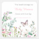 Pegatina Cuadrada Mariposa Verde Floral Baby Shower de Primavera