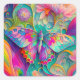Pegatina Cuadrada Mariposa y flores psicodélicas coloridas