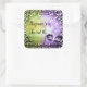 Pegatina Cuadrada Máscara de mascarada verde y morada Mardi Gras Fie