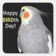 Pegatina Cuadrada Mascota Bird Cockatiel Photo Happy BIRD Day Birthd