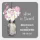 Pegatina Cuadrada Mason Jar y el Boda de White Daisies