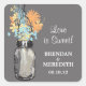 Pegatina Cuadrada Mason Jar y Wildflowers Boda