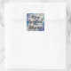 Este pegatina presenta un fondo azul blanco gris morado de tintes con la tipografía más espiritual que religioso en escritura cursiva purpurina negra. Terminado en una pintura al óleo.