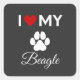 Pegatina Cuadrada Me encanta mi personalizado de perro Beagle