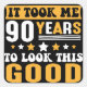 ¡Me tomó 90 años lucir así de bien! Gracioso regalo de cumpleaños 90 para mujeres y hombres. Un regalo de cumpleaños lindo con un diseño de citas divertidas para cumplir 90 años. Usa orgullosamente esta camisa en tu cumpleaños número 90, o dásela como un regalo especial por haber cumplido 90 años con sus seres queridos, el abuelo, la abuela, el bisabuelo, la abuela, el tío, la tía, el papá, la mamá, un amigo, el compañero de trabajo, el jefe, el profesor..