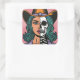 Pegatina Cuadrada Media Cowgirl Half Skeleton Western Spooky Pegatin