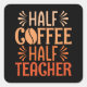 El divertido diseño de café para el profesor que ama su café, incluye un grano de café y un texto que lee Half Coffee Half Teacher! Café de profesores diseña tazas, pegatinas, bolsas, almohadas, camisetas, y más!