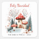 Para amigos y familia en Navidades, Feliz Navidad acuarela pegatina de bosques de invierno, que se puede personalizar fácilmente. Para su envoltura de regalo o necesidades de sello para sobres en Navidades.