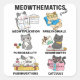 A row of playful cats acts out different math topics under the heading “Meowthematics,” including ideas like meowtiplication, purrobability, and catculus. Each cat has its own pose with books, dice, or charts, creating a light classroom mood that suits students, tutors, and math teachers who love cat puns. The simple layout and bright colors help people searching for funny math themes, nerdy cat jokes, and school subject puns notice it quickly.