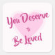 Pegatina Cuadrada "Mereces ser amado" Corazón rosado