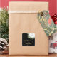 Eleva tus regalos corporativos de vacaciones con estos Personalizados pegatinas de Feliz Navidad. Personalice cada etiqueta con el logotipo de su empresa en un fondo negro de moda con "Feliz Navidad" en un elegante tono dorado impreso. Una elegante cortina de flores verdes y blancas enmarca el logotipo, añadiendo un toque festivo.