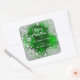 Pegatina Cuadrada Merry Christmas Green White snowflakes green gems