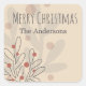 Pegatina Cuadrada Merry Christmas mistletoe and family name text