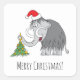 Pegatina Cuadrada Merry Christmas Tree Cute Mammoth Santa Hat