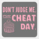 Pegatina Cuadrada Mi Día del Trineo, pastel rosa, humor para la diet