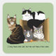 Cuatro gatos agrupados alrededor de una caja de cartón sobre un fondo verde