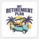 Un diseño divertido con un carrito de golf con palmeras y puesta de sol al fondo y la cita "Mi plan de retiro". Gran idea de regalo para golfistas, pensionistas o jubilados.