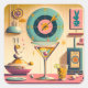 Pegatina Cuadrada Mid Century Atómico Futurista Conejo Martini