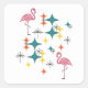 Pegatina Cuadrada Mid Century Modern Atomic Starburst Pink Flamingos