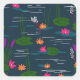 Pegatina Cuadrada Midnight Whimsical Lotus Floral Garden