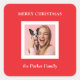 Pegatina Cuadrada Minimalist Modern Christmas Red with Photo