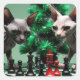 Pegatina Cuadrada Minskin Kitten En Un Equipo De Navidades