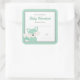 Pegatina Cuadrada Mint Fox Baby Shower Bookplate, género neutral