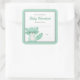 Pegatina Cuadrada Mint Raccoon Baby Shower Bookplate, neutral