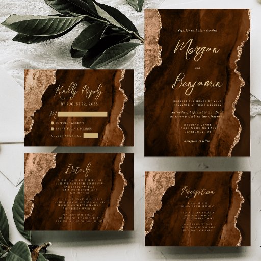 Mocha Brown Agate Gold Script Wedding SuiteDiseñado por Akhates Designs