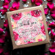 Gracias a los pegatinas de la ducha de novias con el nombre, la ocasión y la cita de la novia en un fondo de flores y hojas rosadas calientes. COINCIDIENDO elementos de nuestra colección.