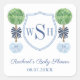 Este diseño clásico/gracias pegatina presenta un sencillo escudo monograma de 3 letras flanqueado a cada lado por una bola de topiario pintada a mano en un jengibre con un elegante arco de rayas azules y blancas. Los elementos acuarelas fueron pintados por mí en papel 100% de algodón y escaneados en forma digital. La forma escudo es de otro artista. Este diseño funcionaría igualmente bien para una ducha de bebé (donde se ha anunciado el nombre del bebé) o para una ducha boda/pareja.