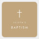 Pegatina Cuadrada Moda Cruz marrón dorada Bautismo
