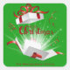 Pegatina Cuadrada Moda elegante Feliz Navidad Verde y Rojo