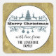 Pegatina Cuadrada Moda Gris blanco negro Feliz Navidad Purpurina de