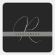 Pegatina Cuadrada Moda Monograma Nombre inicial Carbón Gris Negro