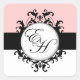 Pegatina Cuadrada Moda Monogramas negros franceses Damask Labels Squ