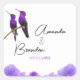 Pegatina Cuadrada Moda Morado Hummingbirds y Petales Boda