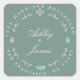 Moda, decoración moderna y sencilla de retorno boda se dirige al pegatina redondo clásico con el texto del futuro Sr. y Sra. en blanco y elegante guion sobre un polvoriento fondo verde adornado con laureles y otros detalles decorativos rústicos. Simplemente agrega tu nombre y dirección. Diseñado exclusivamente para usted por Happy Dolphin Studio. Si necesita ayuda o productos coincidentes, póngase en contacto con nosotros en happydolphinstudio@outlook.com. ¡Estamos encantados de ayudarle a hacer de su boda el día más hermoso!
