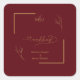 Pegatina Cuadrada Modern Burgundy Golden Leaflet Border Monogram