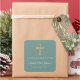 Modern Green Religious Cross Boy Confirmation Square Sticker.