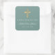 Pegatina Cuadrada Modern Green Religious Cross Boy Confirmation