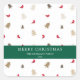 Add a touch of modern holiday charm to your gift wrapping with these personalized Christmas gift stickers! Featuring a minimalist pattern of red cardinals and evergreen trees, this square label design is both festive and elegant. The deep green band includes a customizable "Merry Christmas" message and your family name or greeting.