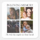 Memorial friend modern photo sticker, featuring 4 photos and a template text which reads 'IN LOVING MEMORY, ' a template message which can be personalized and personal message which is eaily edited. All font styles, sizes and colors can be changed after personalizng, by clicking on the customize further link.