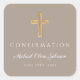 Modern Taupe Religious Cross Boy Confirmation Square Sticker.