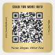 Simple y moderno pegatina de oro de código QR para su empresa u organización. Añade tu escaneado código QR y personalizar hasta cuatro líneas de texto con tu nombre, lema, lema, sitio web, número de teléfono, etc, o elimina.