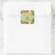 Pegatina Cuadrada Moderna Feliz Navidad Rojo Verde Fila Wreath